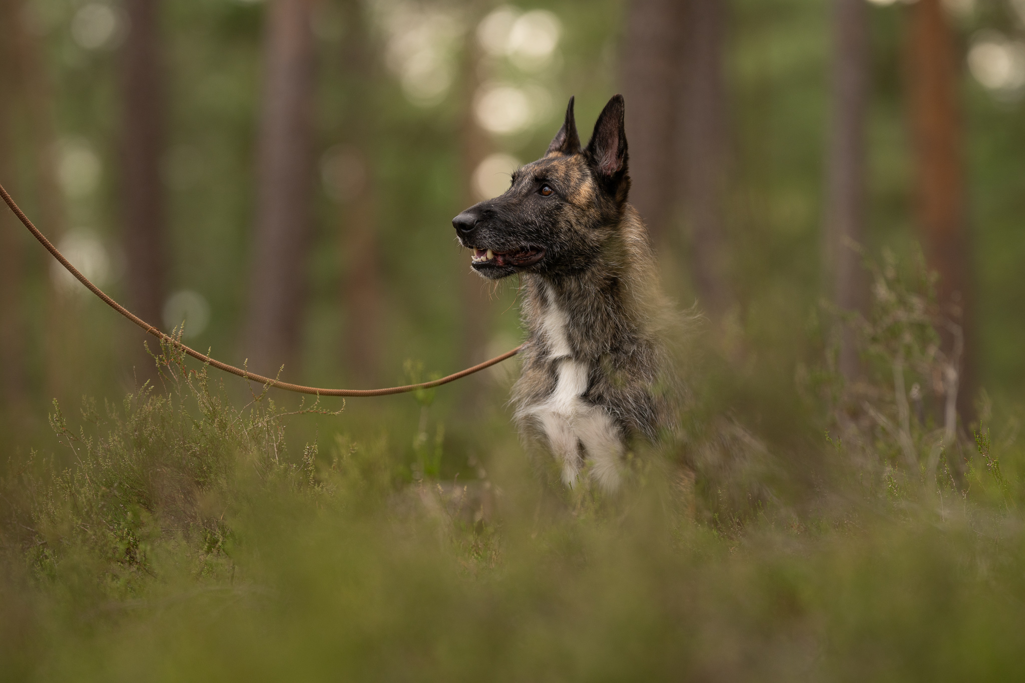 Auch an der Leine können wunderschöne Bilder entstehen. Alternativ habe ich immer eine Shootingleine dabei, die ich im Nachhinein wegretouchieren kann. Beachte, dass diese recht dünn ist und bei stark ziehenden Hunden einschneiden könnte.
